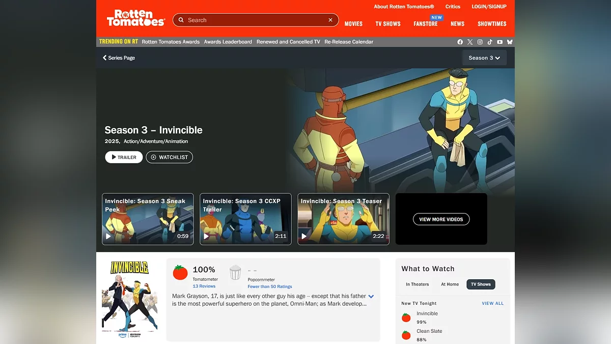 Musim ketiga dimulai dengan rating 100% dari kritikus di Rotten Tomatoes. Ulasan memuji pergeseran dari klise superhero standar, kombinasi cerita pribadi Mark Grayson dan plot utama, serta elemen khas dalam bentuk kejutan yang tak terduga dan aksi berdarah. Belum ada rating dari penonton.