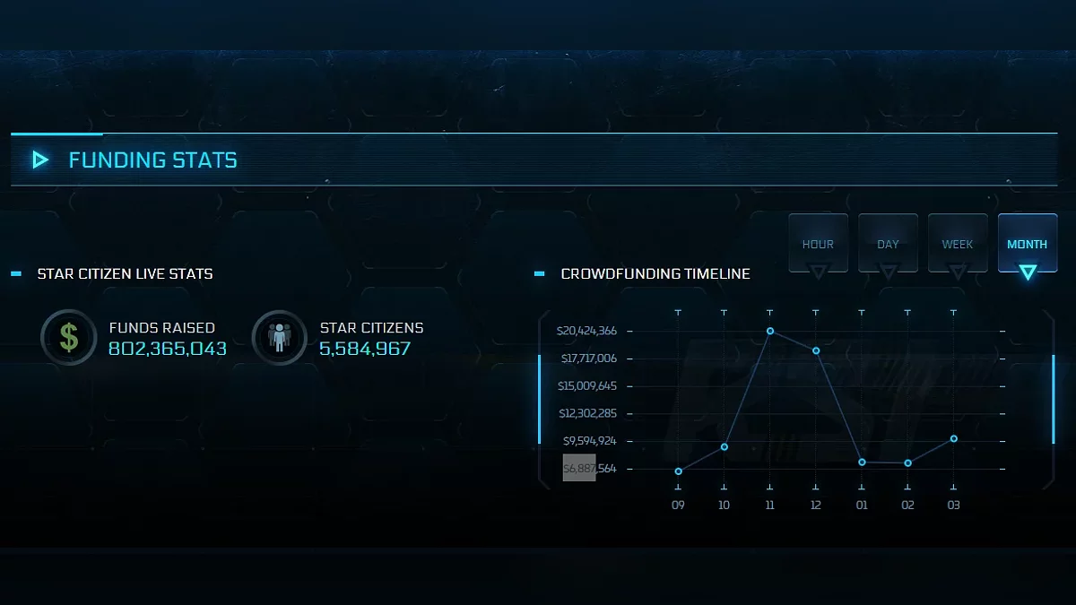 Jumlah yang sangat besar untuk simulator kehidupan luar angkasa — para pembuat Star Citizen telah mengumpulkan lebih dari $802 juta untuk pengembangan permainan. Mari kita ingat bahwa kampanye crowdfunding dimulai pada tahun 2012, tetapi proyek ini masih dalam tahap alpha.