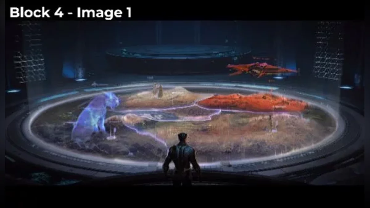 Seni konsep tersebut menampilkan Wakanda, peta dunia permainan, dan sketsa untuk cutscene yang direncanakan. Menurut poster, adegan tersebut menggambarkan pertarungan ritual antara T’Challa dan putranya Azari, yang diakhiri dengan kedatangan Skrull dan penangkapan T’Challa.