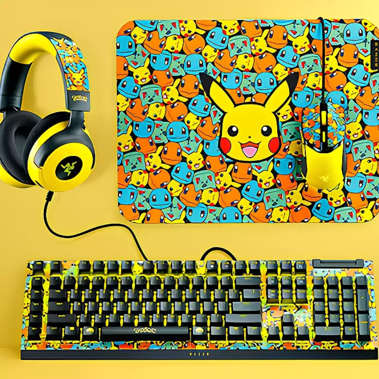 Razer, bekerja sama dengan The Pokémon Company, telah meluncurkan serangkaian aksesori permainan khusus yang terinspirasi oleh waralaba ikonik. Awalnya diluncurkan di Asia, koleksi ini kini tersedia di Amerika Utara dan Selatan, Eropa, Australia, Selandia Baru, dan pasar CIS. Lineup ini mencakup empat item kuning-hitam yang langsung dikenali yang menampilkan Pikachu, Bulbasaur, Charmander, dan Squirtle: