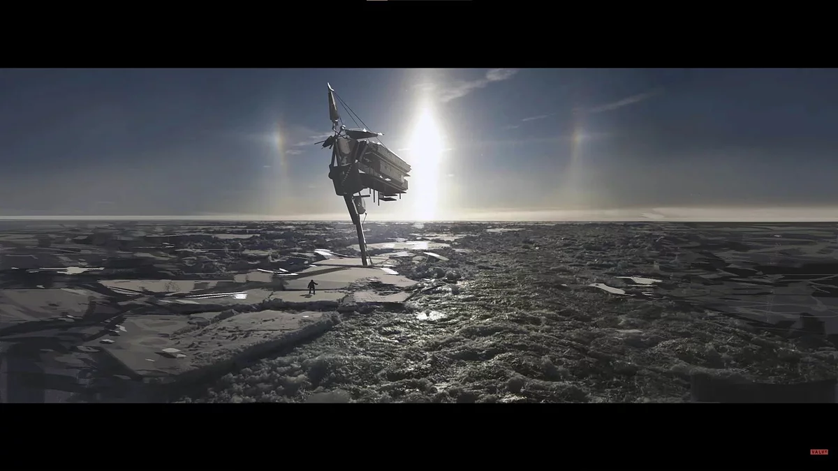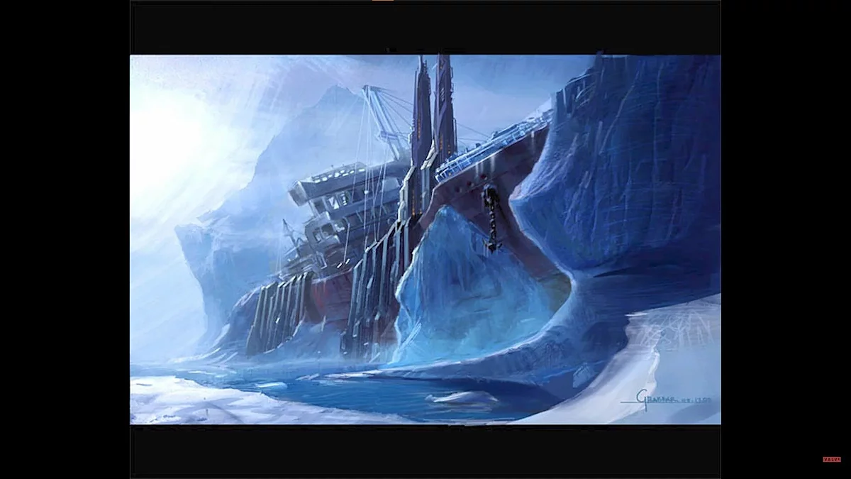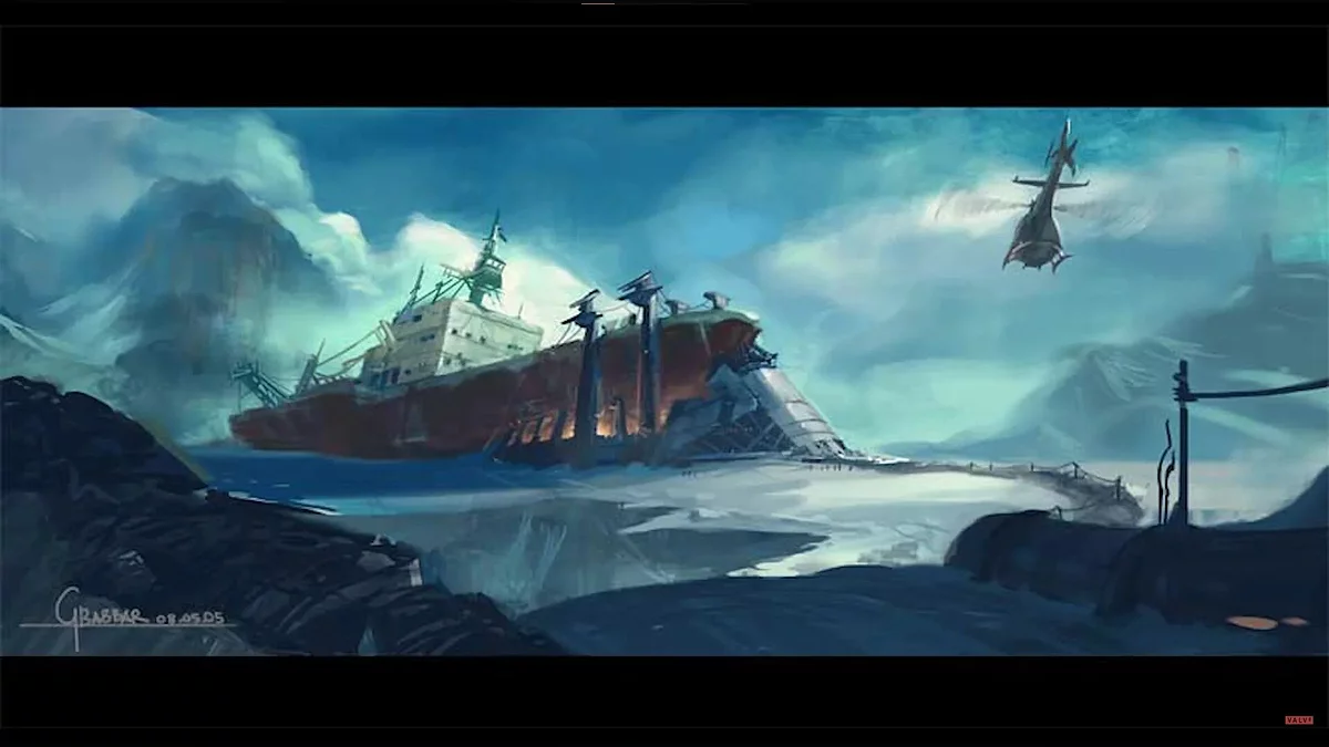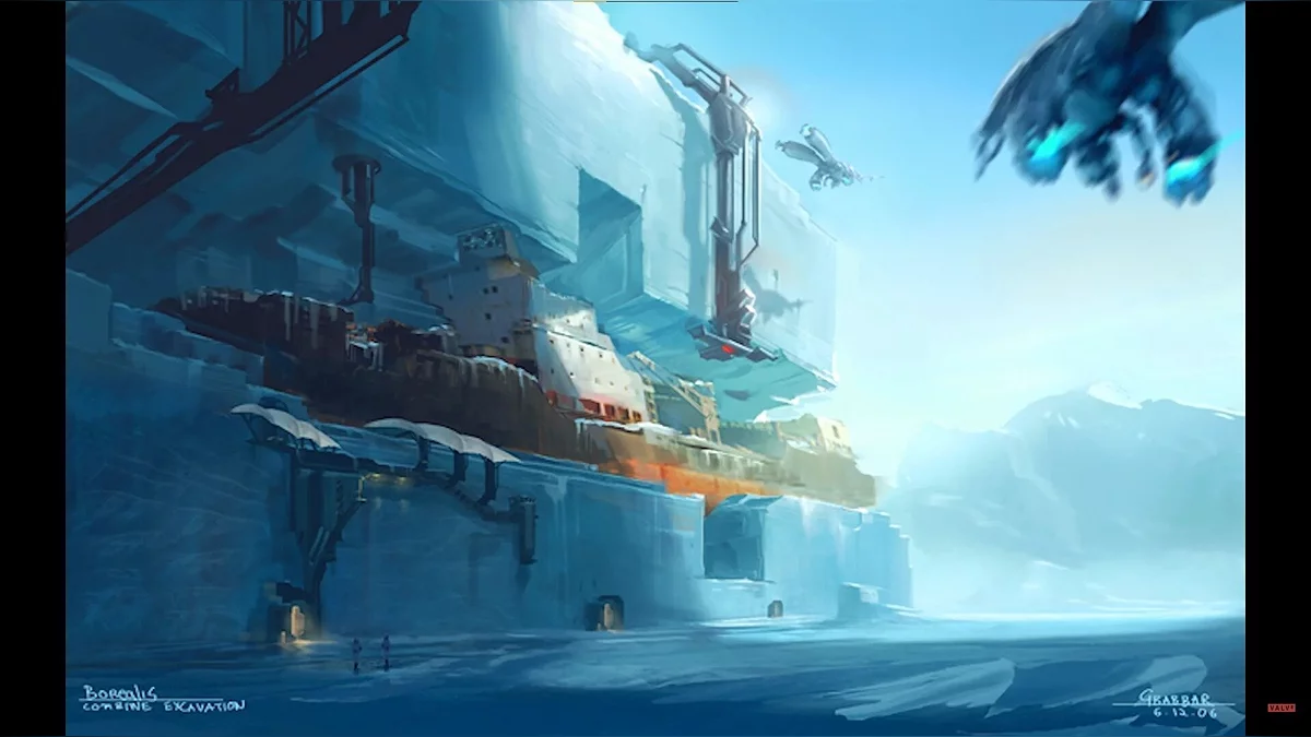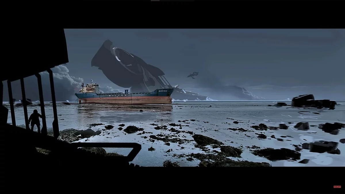The concept art looks no less interesting. One of them apparently depicts the Borealis ship, which was shown in the finale of Half-Life 2: Episode Two.